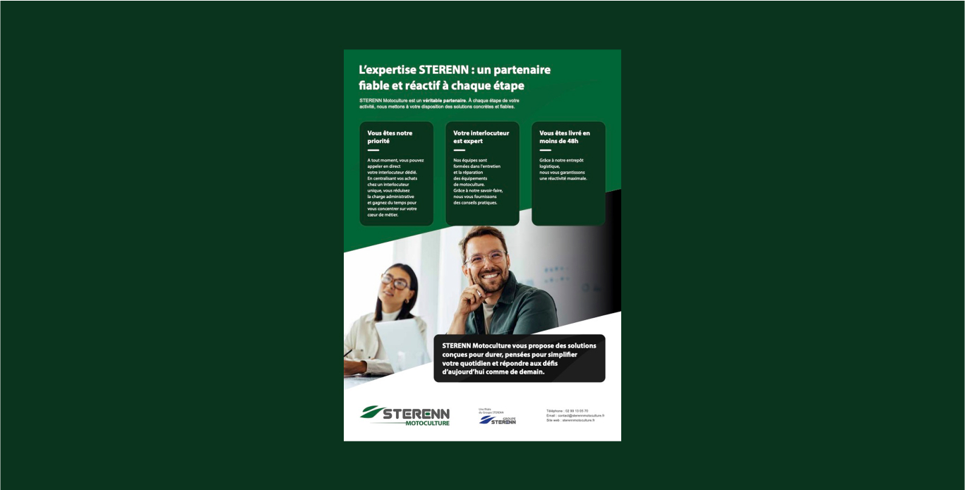 Sterenn Motoculture opère un véritable changement de positionnement en passant de la vente de pièces détachées à la vente d’équipements. Cela nécessite de nouer des partenariats avec de nouveaux revendeurs, qui ‘est parfois difficile de convaincre de référencer de nouvelles marques. L’effort est donc double :
